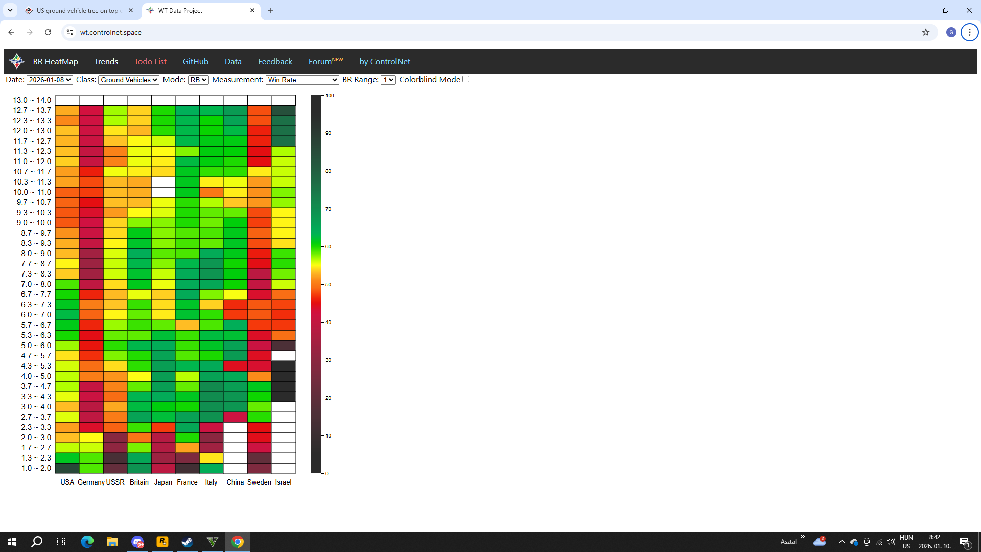 Now let’s look at this Abrams. It has an almost 50% win rate, but its Kill Dead stats are significantly worse than the SEPV2’s. Do you know why? Because there’s no Su-30, no Pantsir, no LMUR. But the US has the A-10A Late, which has a strong CAS.