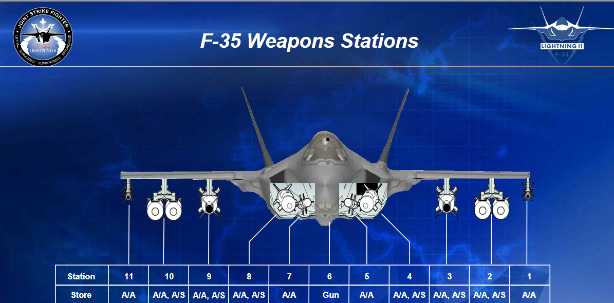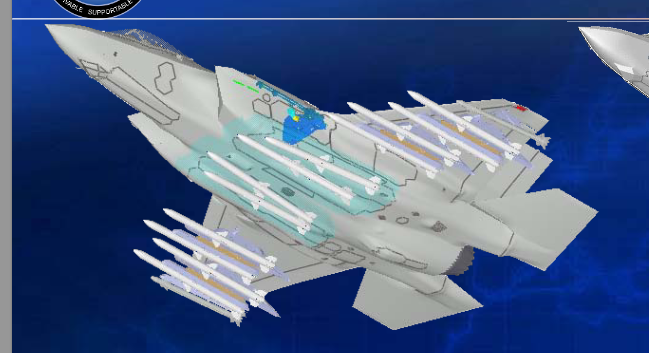 Upon a closer look it seems the F-35 could actually mount more missiles than the EFT with Sidekick upgrade. 6 inside the bay, and 3 on each wing? That’s a total of 12 BVR missiles