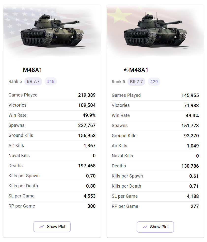 your right who is playing a vehicle matters quite a bit indeed but when you look at a vehicle that isn’t new and is used by the actual long term players of a nations the story’s a lil different