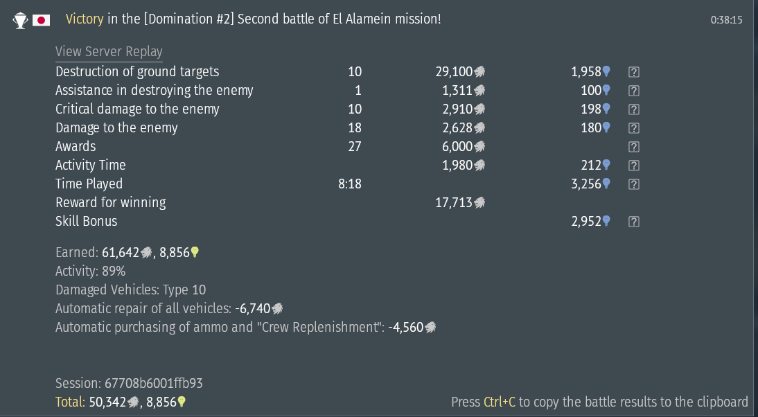 I take a tech tree F2A out, get four kills, fly around until I see “Useful Actions” pop up and land. 19k SL. My plane costs 15.2k to spawn. Take off. Go get three more kills. Die. K/D is 7-1. Mission score is ~4000. Check the balance: +31k SL | -15.2k SL. Get real.