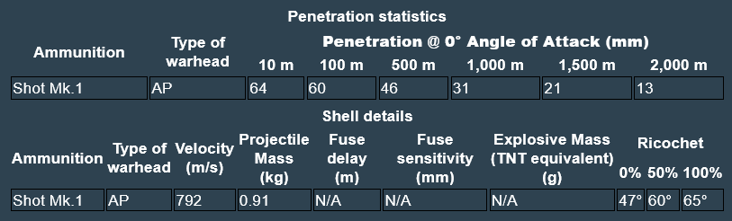Main Armament : 1 x 40mm QFSA Vickers-Armstrong (Mk K?) (2pdr?)