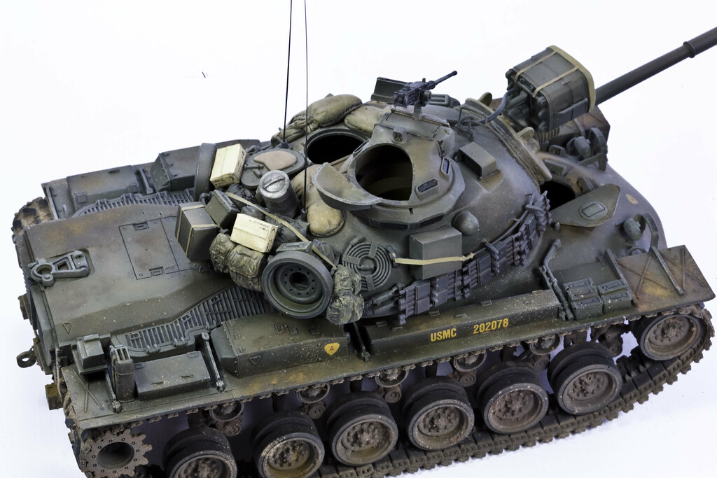 TLDR: An upgraded M48 that has a better engine, less explosive fuel, and an additional .50 on a pintle mount, the AN/VSS-1 Xenon spotlight, (potentially) external equipment/stored items that can offer a very slight amount of extra protection, and Night vision for the gunner and driver.
