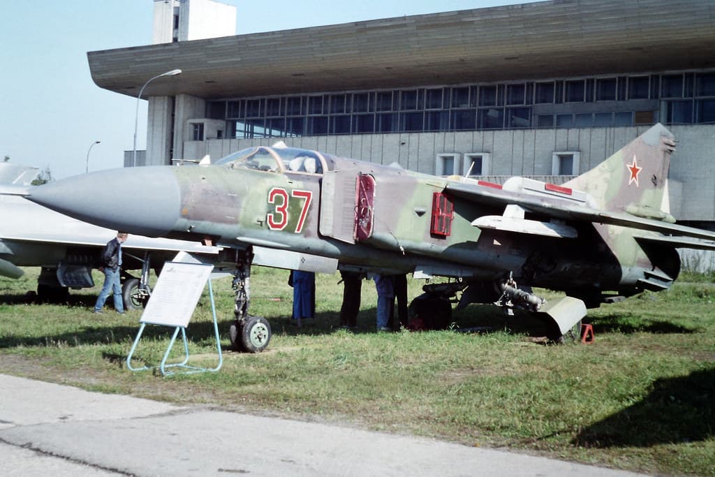 It did have all those things, but that information card is incorrect. The only Gardeniya-equipped Flogger built in 1982 was 23-35 - MiG-23MLG 23-37 and MiG-23MLS 23-47 were built in 1984, and 23-57 was built “in the late 1980s”. Frustratingly, it seems both 23-35 and 23-57 were called “MiG-23MLDG” (for some reason). I don’t know why, it’s incredibly confusing to figure out the names of these electronic warfare Floggers. I’ve seen 23-35 and 23-57 be called MLDG or MLGD - one person I read called 23-57 “MiG-23-57”, another source claimed both 23-37 and 23-57 were called MiG-23MLG. The production codes are the only way to tell the difference.