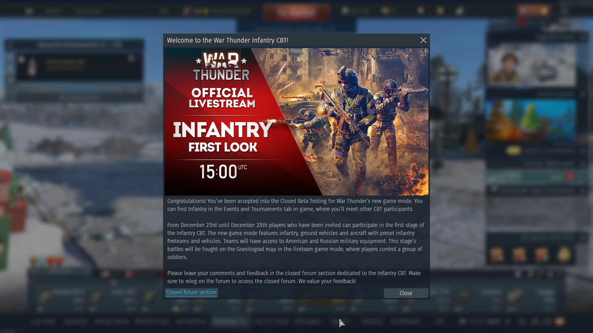 Hey Stona, I’m lucky to have gotten CBT qualification, which makes me really happy, but it seems the event hasn’t started yet. I’m guessing there might be some unexpected technical issues or bugs? I think… if it can’t be resolved for now and needs to be postponed, I don’t mind. If it opens after Jan.7th or Jan.9th winter event ends, we won’t have to worry about missing the winter event because of participating in the infantry CBT. Before it starts, I can continue grinding the MIG-25 and CRV. :D
