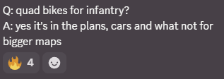 I believe BvvD in the Russian stream spoke about potential infantry vehicles for transport on larger maps?