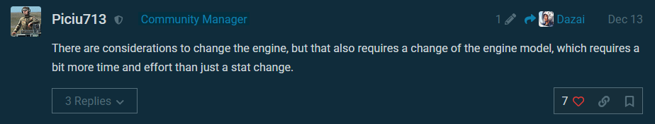 that image was from 4 days ago, now the live patch has dropped and i would really want a solid answer instead of just “consideration” now, because the J-10C in current meta is DoA, it’s literally the same thing with a minor radar improvement (azimuth gimbal reduced from 170 to 140) and 2 more PL-12s… like what’s the point in screwing up a plane this bad? also how come the Gripen can get 16 Spices but china gets only 4 LS-6 IRs? at least give us the GB3 (IR)s as well