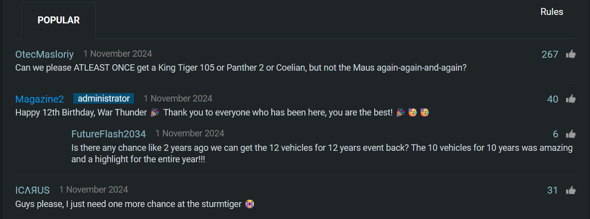 Fingers crossed. One would hope they saw the overwhelmingly popular request for those removed German tanks and took notes for next year…