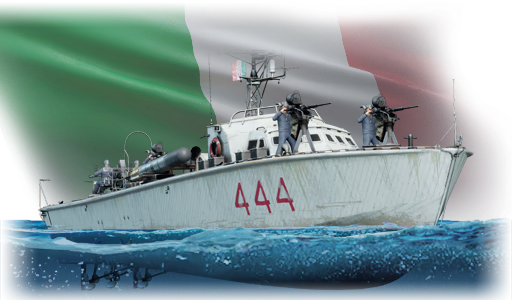 The American Higgins torpedo boat, originally built for Lend-Lease to the USSR, ended up in service with the Italian Navy after the war. The MS 444 is very fast and agile, and in addition to its torpedoes, it features an excellent armament of 40 mm and 20 mm autocannons. For the most effective salvo, position this boat broadside to the enemy.