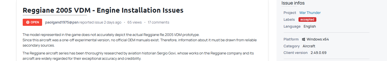 I don’t know if this is a miscommunication between whomever wrote this announcement and the people that actually work on flight models, or if a straight up lie in order to boost up sales, but one thing is certain: Gaijin must address this, either correcting the announcement to say that the plane performs worse (not better), or buffing the performance of the Re.2005 VDM to whatever level they think is correct when they were making this announcement.