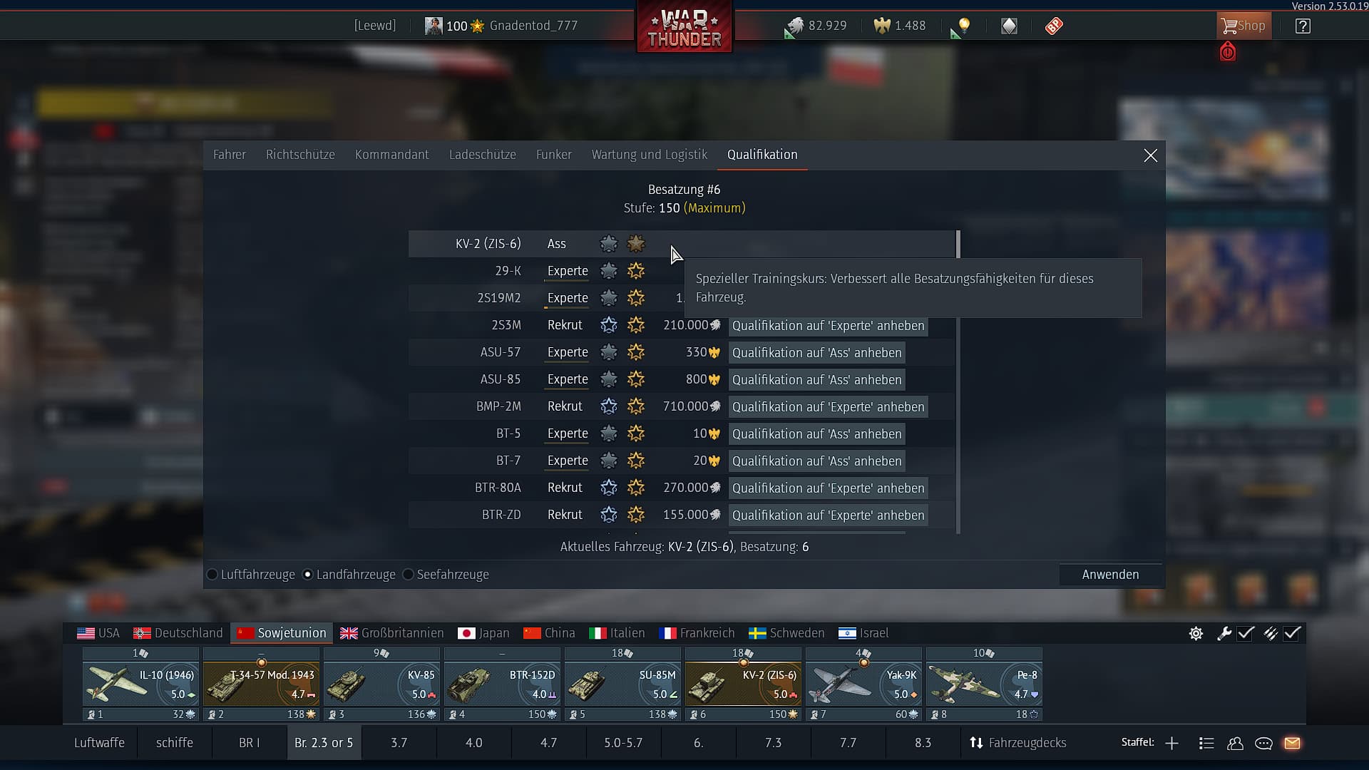 Der KV 1-B bei den Deutschen war wohl meine beste Investition von Warbonds in Fahrzeuge. Endlich ein Panzer der mir liegt. Hat etwas gedauert, bis ich damit in die Gänge kam, aber jetzt geht es ziemlich gut.