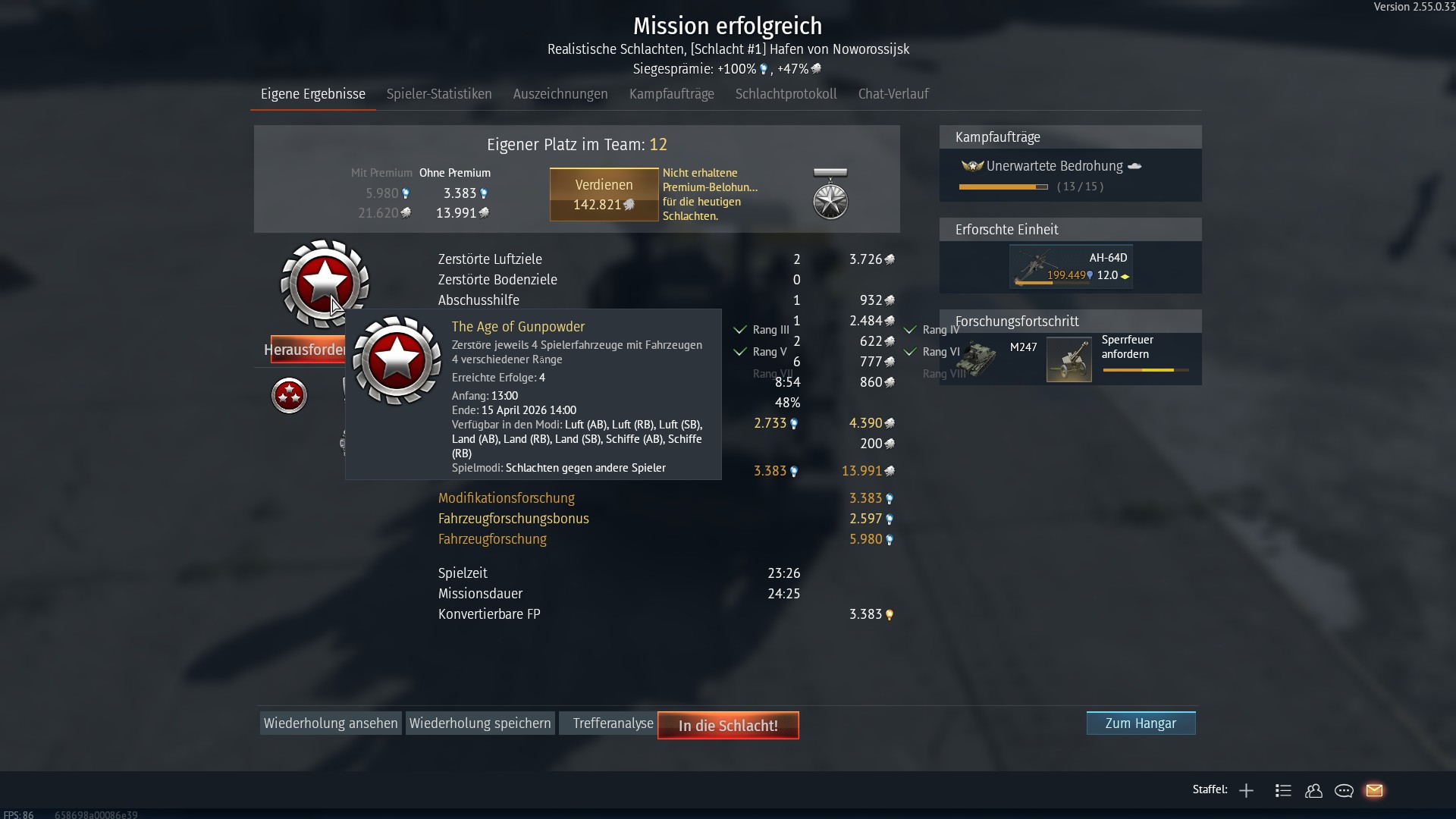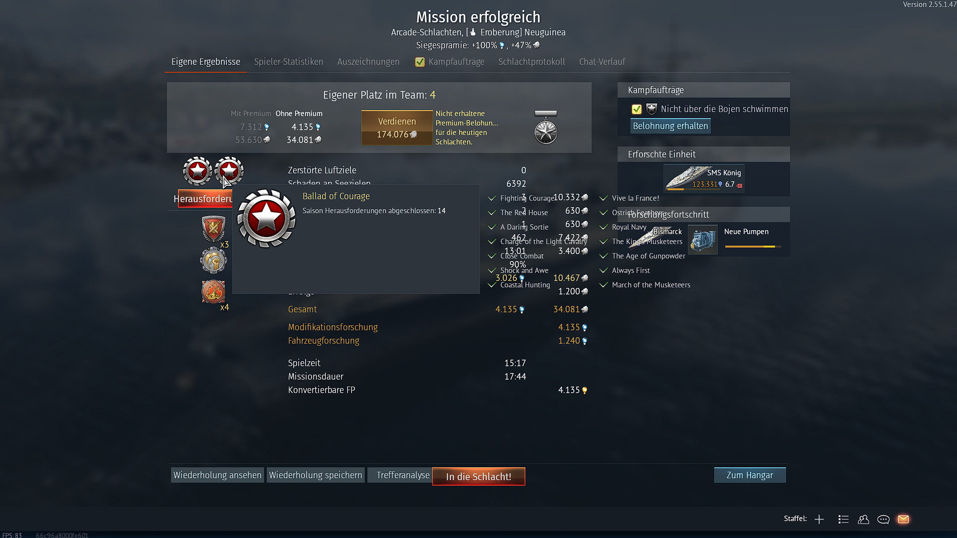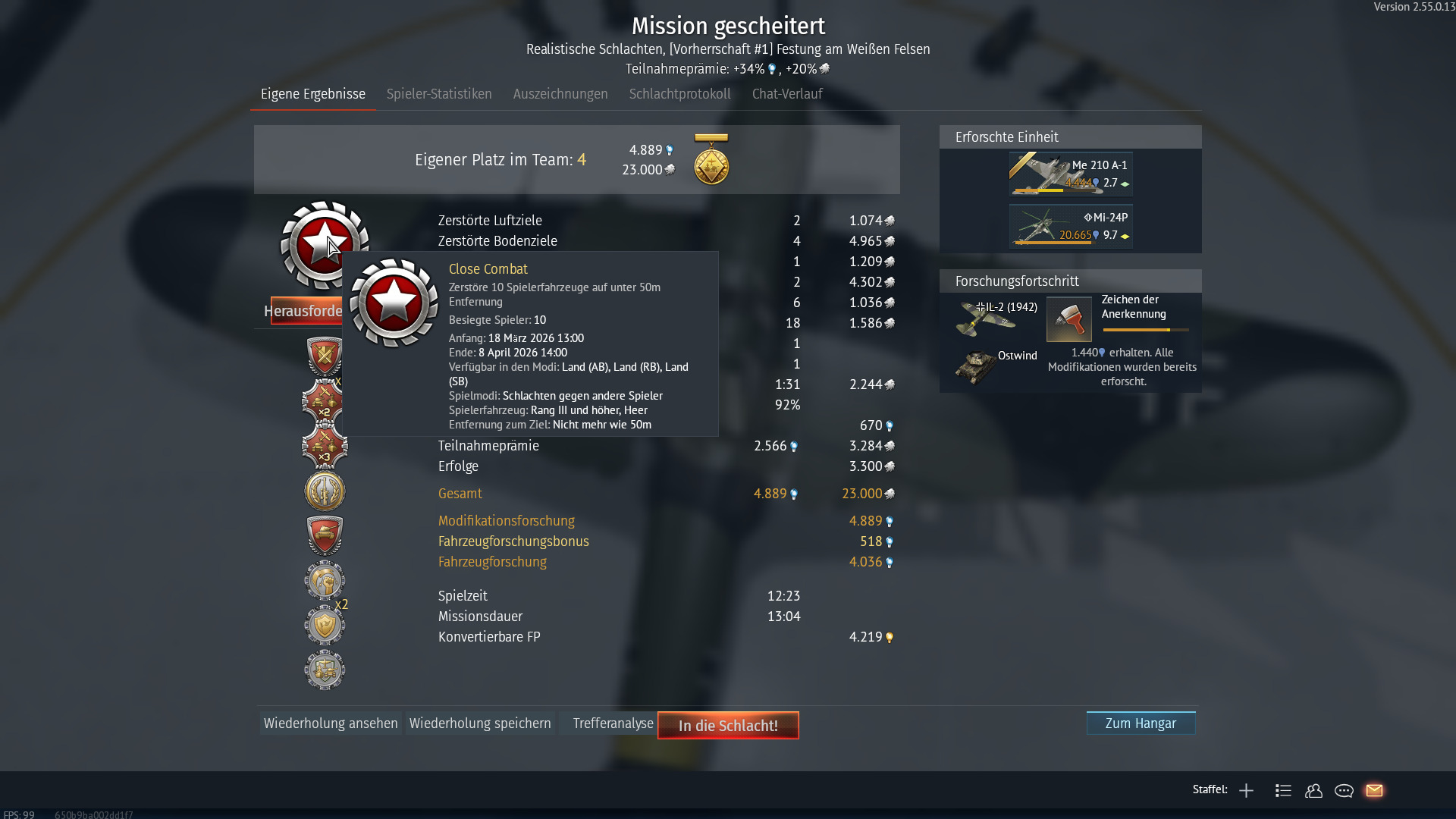 Die neuen italienischen Flugzeuge machen Spaß. Besonders die Héja Ii auf BR 2,0 AB fliegt sich super agil, besser als die Re.2000 und erkennbar stärker bewaffnet. Die Weiss Manfréd WM-23 ist besser bewaffnet, fliegt sich aber erheblich träger. Eine Me-210 auf BR 3,0 und Tier 3 als strike fighter ist sicher eine gute Option für die Erledigung der Tagesaufgaben.