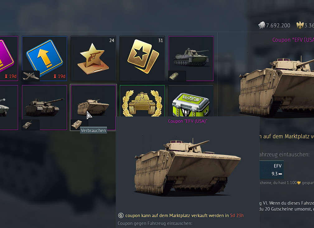 Es wird soviel gemotzt in dem Spiel, dabei begreifen die Wenigsten, wie man mit Boni “zugeschissen” wird, wenn man halbwegs “intelligent” spielt. Gut die Art der Boni, darüber können wir uns streiten, die Gutsch(w)eine für den reduzierten Fahrzeugkauf sind für mich persönlich nichts. Sieht jeder Spieler anders. Aber generell wirst du in dem Spiel belohnt dafür, wenn du halbwegs dein Fahrzeug durch die Schlacht bringst.