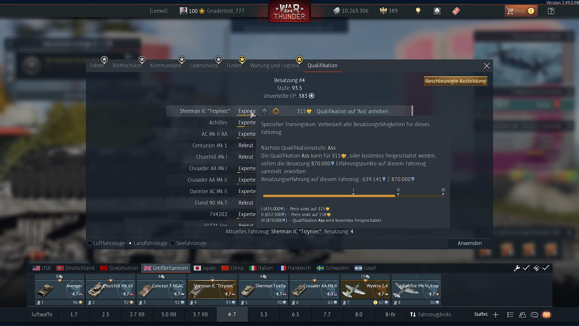 die Franzosen auf 8.7, experten crews auf allen slots…man sollte immer erst alle panzer freiforschen, kaufen auf experten leveln, flugzeuge im BR besitzen…nur so sollte man Warthunder professionell spielen, die haubentaucher, die nur 1-2 fahrzeuge in einem BR haben, sollten es dann lieber nicht zocken…