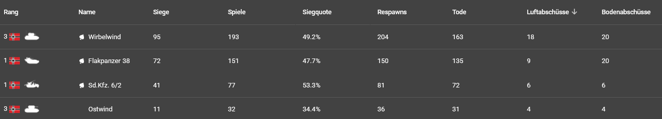 Du fährst ja eher selten Flak und hast dann schon mehr Boden- als Luftziele erwischt…