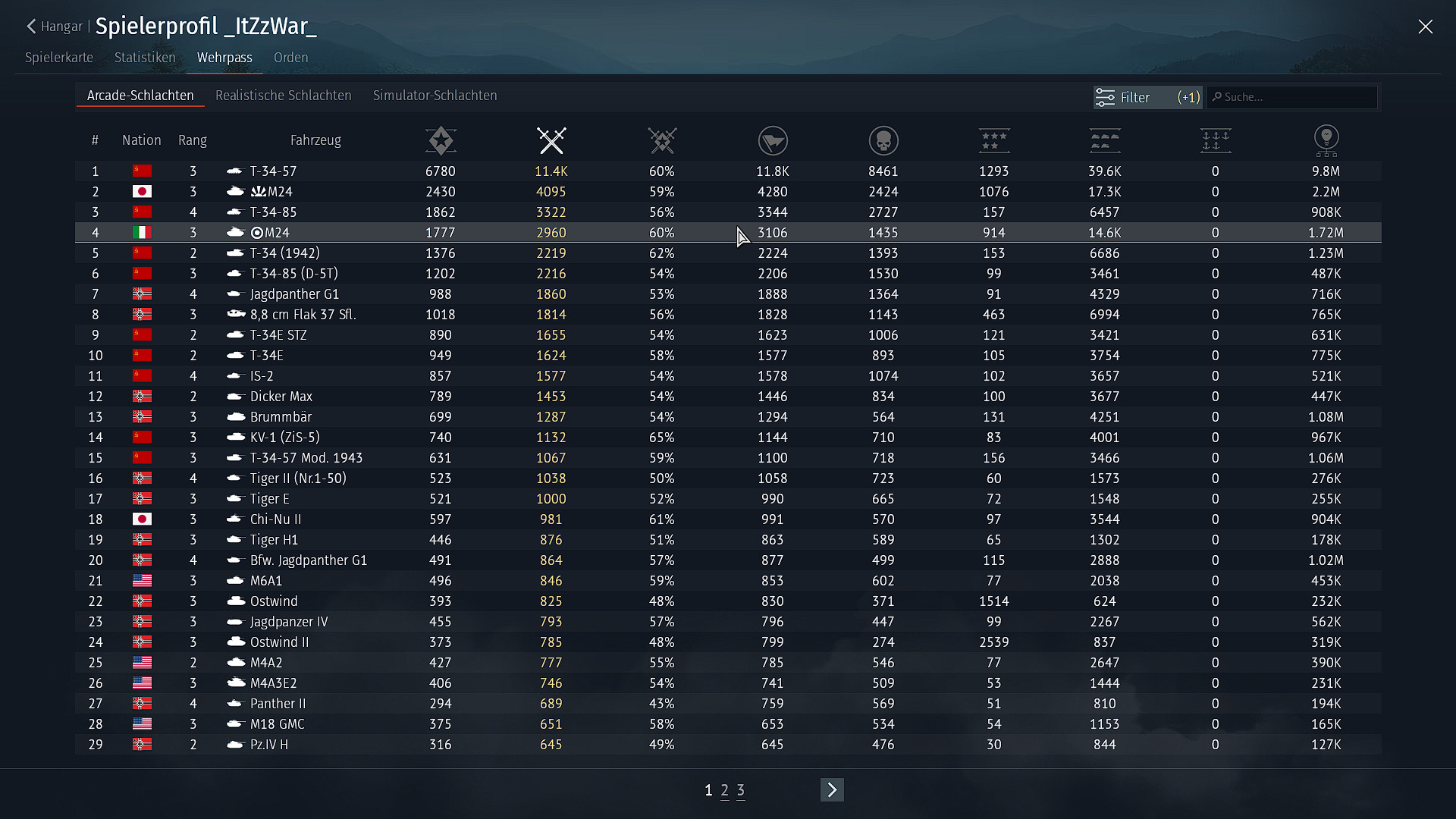 Ich will ENDLICH mal mit Leuten Panzer 4.0 (Deutschland, die Anderen sind noch darunter) spielen, die nicht einfach nur dumm wie Shice sind und durchsterben. Das ganze umsichtig spielen nützt dir nichts, wenn selbst dein Team dir noch deine Position verrät. So einen breiten Strahl den ich grad kotzen könnte, existiert nicht. Grad ist wieder der absolute Bodensatz unterwegs (nicht nur Panzer)