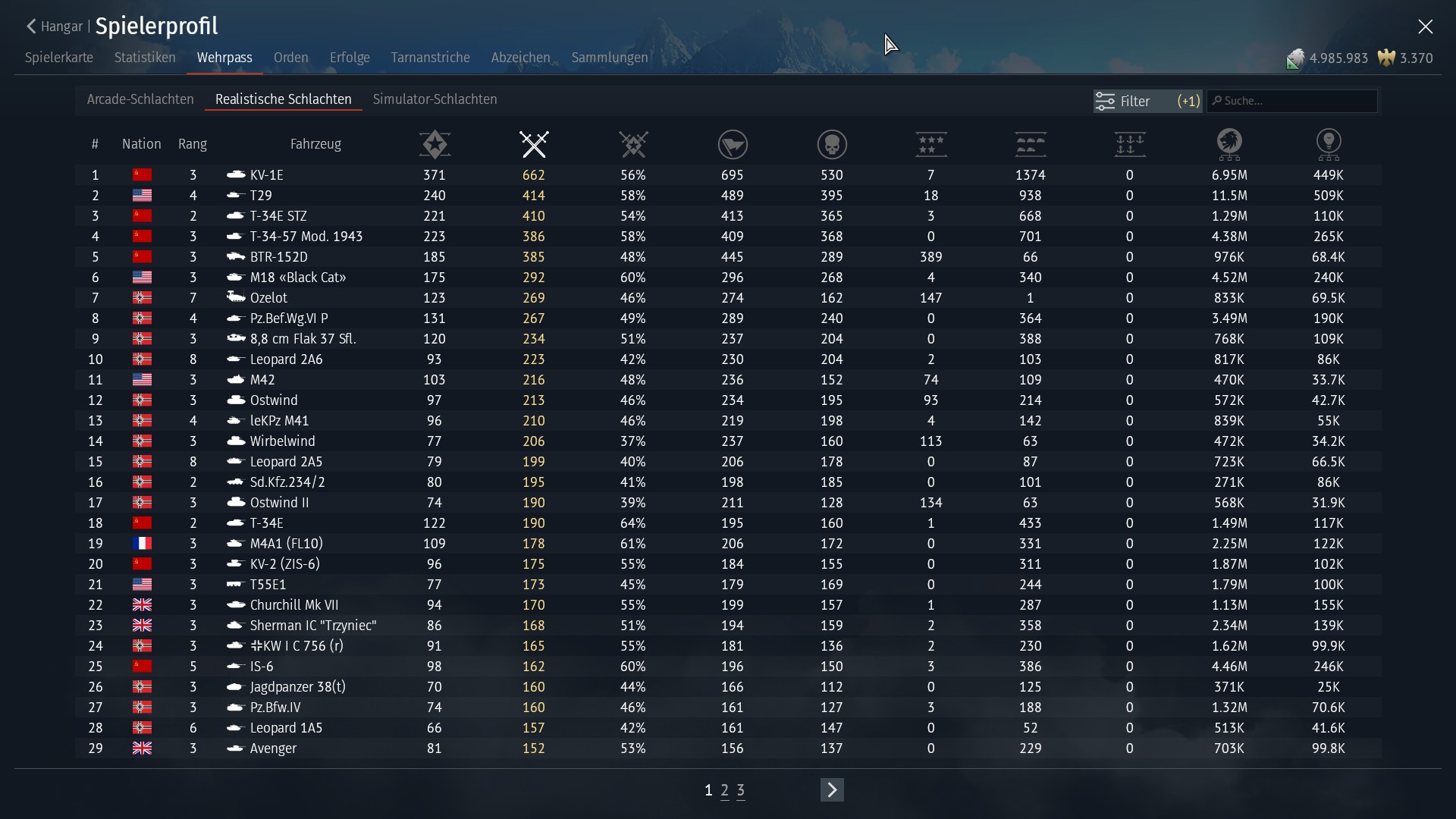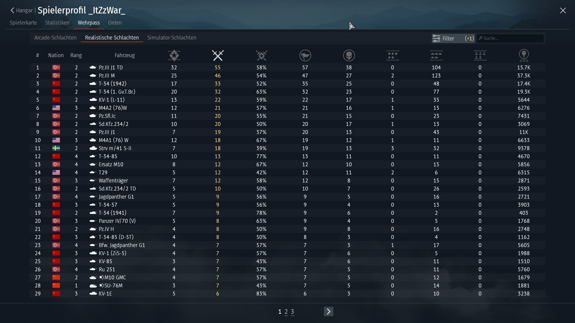 Das sind Spieler die auf Lvl 31 und höher waren. Ich mache auf 2.7 nicht viele Punkte, weil ich mich viel zu sehr damit verzettel, mir zu überlegen wo ich hinfahre oder was ich mache. Wenn ich einfach nur stur geradeaus fahren würde, wäre meine Bilanz wohl auch besser. Schiessen, Scouten und sich so hinstellen, dass man halbwegs nicht gesehen wird, funktioniert mittlerweile. Aber ich komme nicht oft zu einem Abschuss, weil sich die Horden auf ein, zwei Gegner stürzt und dabei draufgeht und ich dann vom Dritten gesnipt werde. Es…ist…anstrengend.