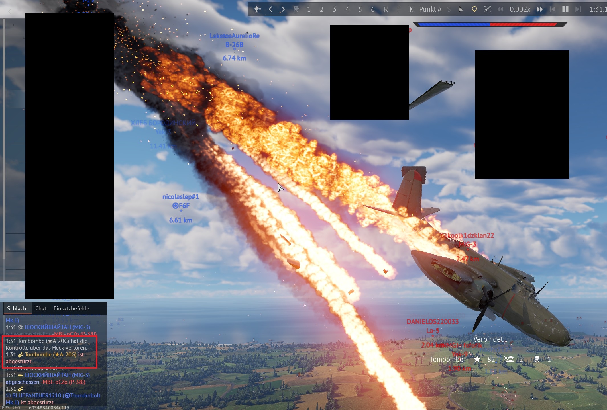Ich habe mir das Replay angeschaut, aber nichts erkennen können. Alle Bomben waren draußen und es gab keine Meldung, wer oder was mich gekillt haben soll. Vielleicht hat wirklich eine Flak eine Bombe getroffen und die war noch zu nah an meinem Bomber. Ich hatte vor vielleicht 3 Wochen einen Bomber auf ca. 300 m gekillt und als der explodiert ist, hat es meinen Jäger auch zerlegt. Heute war ich deutlich näher dran und es ist nichts passiert.