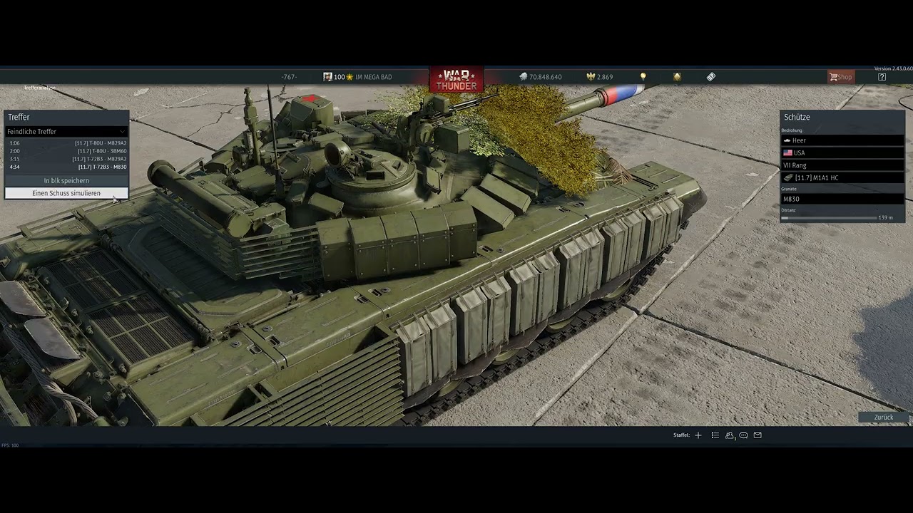 hier z.b sehr gut zusehen was ich meine… eine HeatFS von Abrams mit 480mm Pen… trifft auf meine Zusatz Panzerung die in dem fall 2x 600mm Schutz gegen Hohllandungsgeschosse bietet… das heisst wir reden hier von 1.2 Meter Schutz gegen eine HeatFS die 480mm Pen hat… also irgendwie verliere ich immer mehr den Glauben… aber immerhin versuche ich mir weiter einzureden das dass spiel in erster Linie nur fuer Flieger geschaffen wurde… “ich frag mich wie lange das noch so geht”…