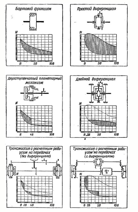 I have another example, this time with the CD-850 transmission which is triple differential type. This is a diagram of the CD-850-5, I’ve highlighted the planetary gear set ups, including the two planetary differentials, for easier clarification.
