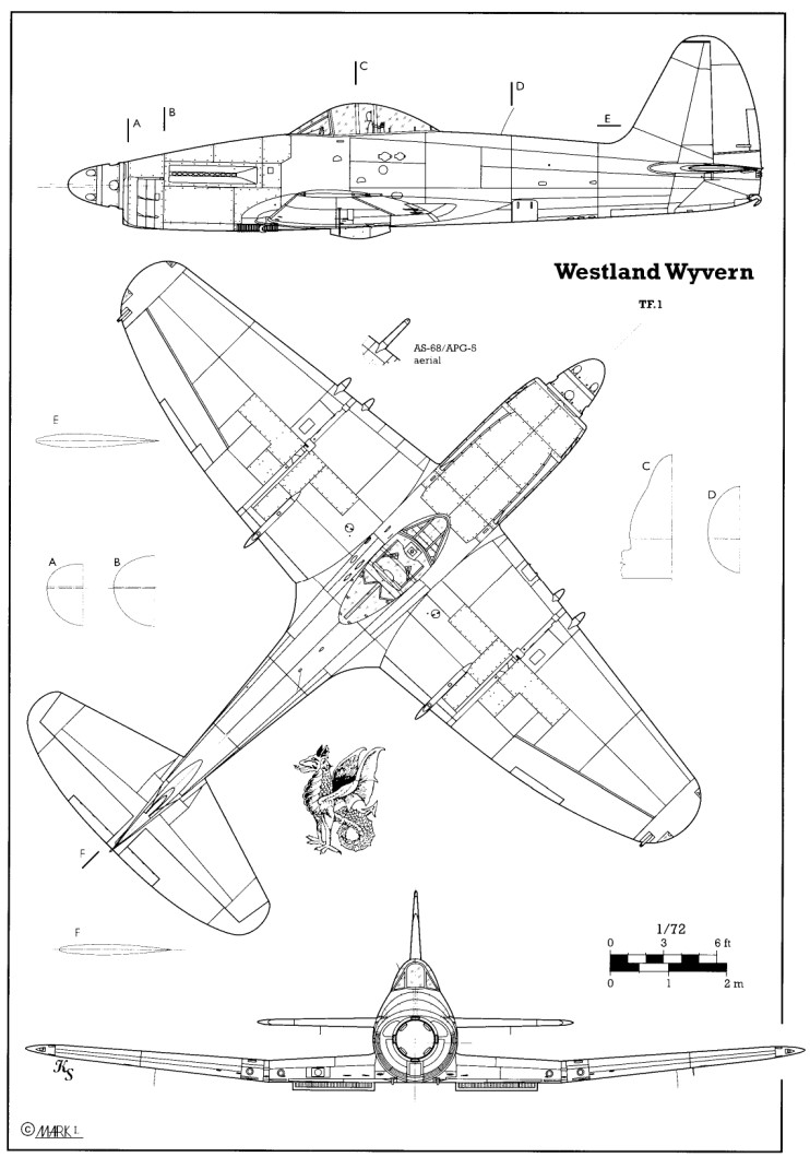 This suggestion is for the Wyvern TF (Torpedo-Fighter) Mk.1, or TF.1. This is the earliest of the anticipated production standard Wyvern airframes, although it ended up substantially different to the later Wyverns, as it is powered by the purely piston Rolls Royce Eagle 22 engine, as oppose to the gas-turbine turbo-props of the later aircraft. This engine delivers a respectable 3,500hp, which is comparable but slightly lower than the Python 3 turbo-prop, and it lacks the residual thrust generated by the pseudo-jet exhausts of the turbo-prop. This overall it would be considerably less powerful than the Wyvern S4 in-game, and could therefore sit in the tree at a lower BR, offering a slightly different playstyle in air battles and slotting in to different lineups as a strike-fighter in ground RB.
