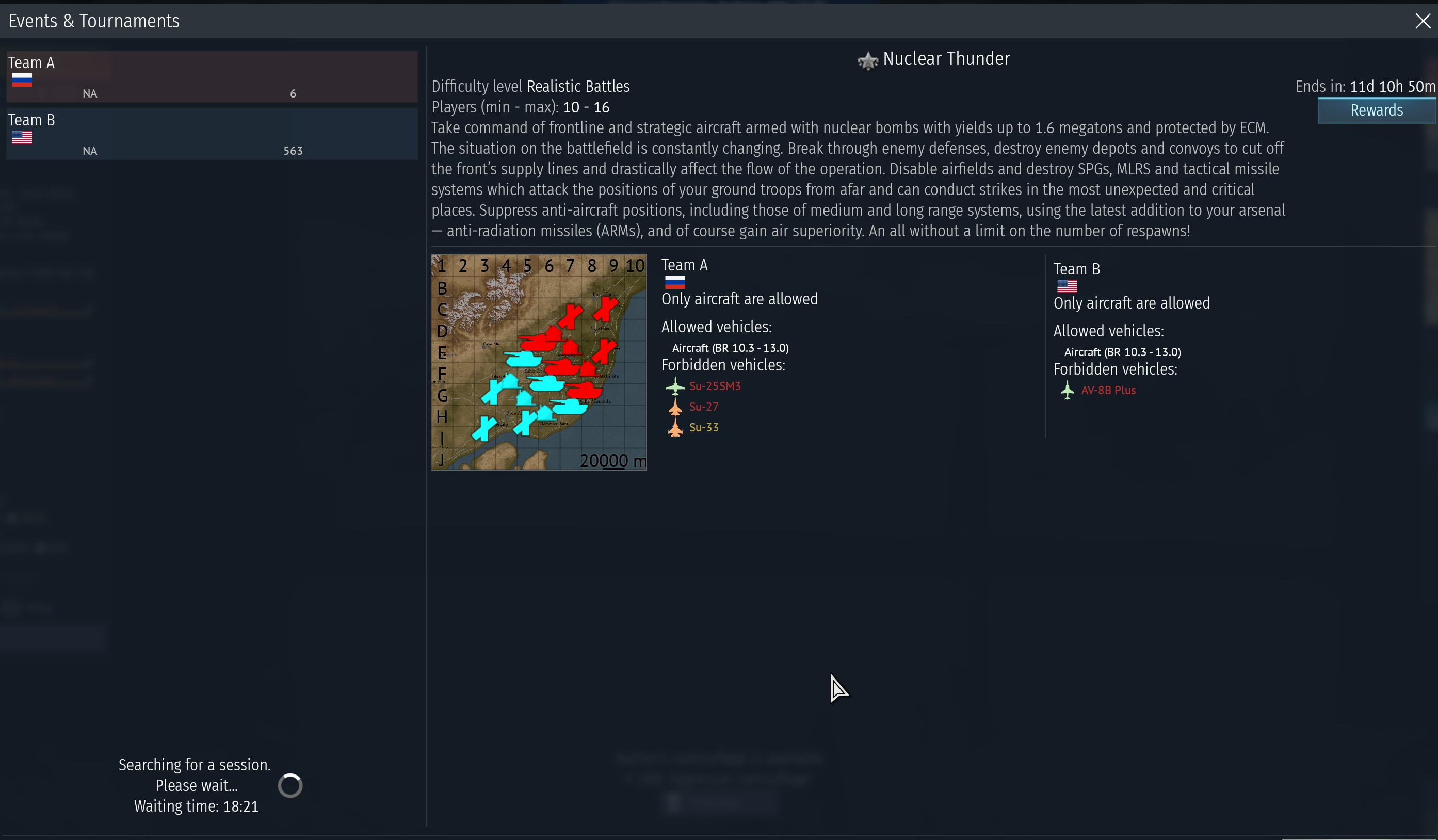 I’m just angry its taking 30 min to get into one game… I still havent been able to play the event and get by far my most favorite aircraft aka THE BUFF (The B-52)