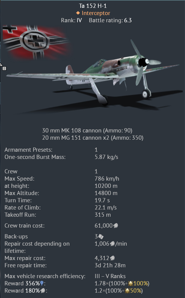 It might not be the absolute fastest at high alt plane anymore, but it is still very very good and handles VERY well at high alt with its long wingspan, the Ta 152 H-1