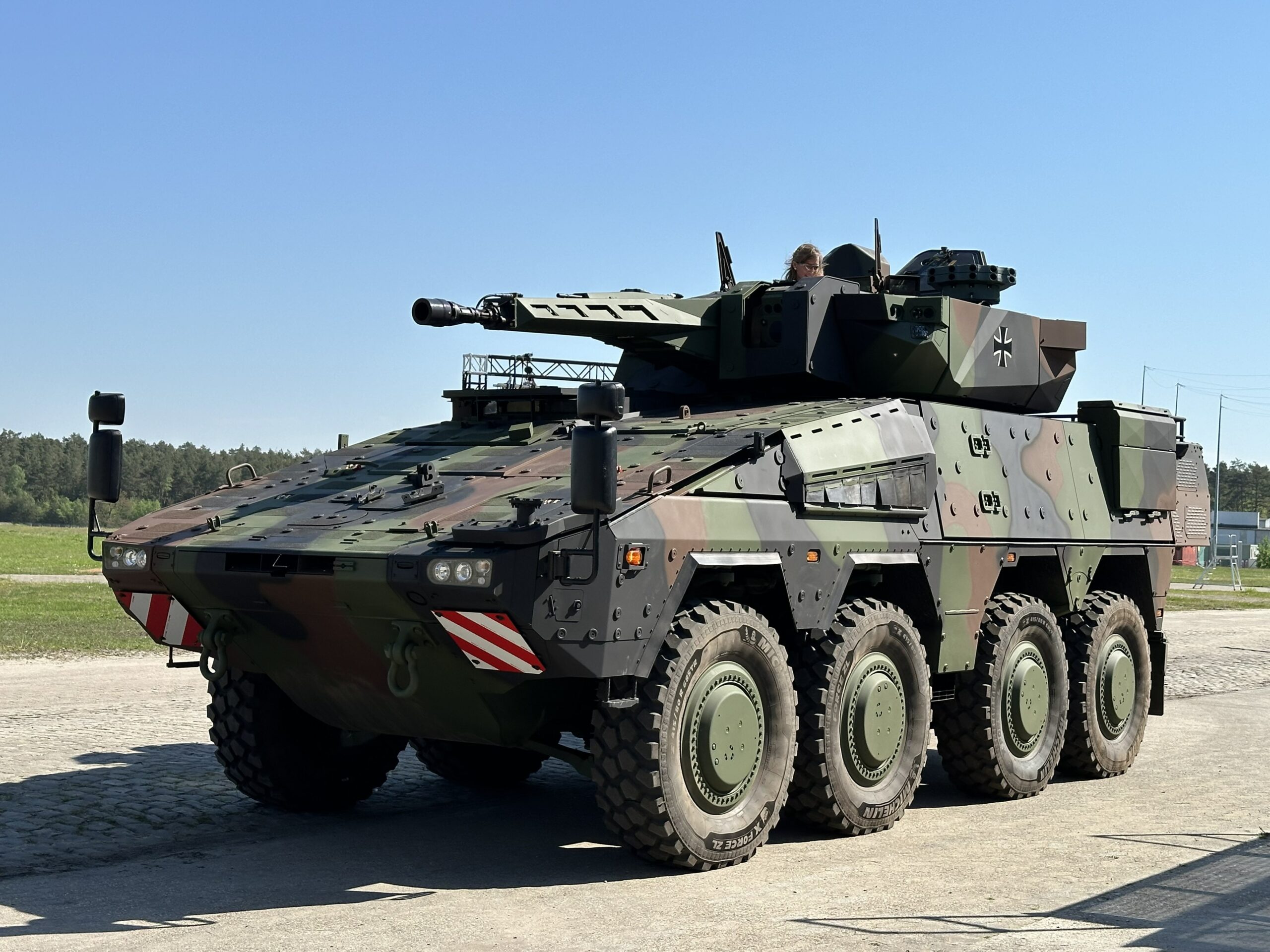 The Tracked Boxer RCT 120, featuring an 120mm Gun, together with an RCWS, Spike ATGM, Trophy APS system and having an top speed of 100km/h