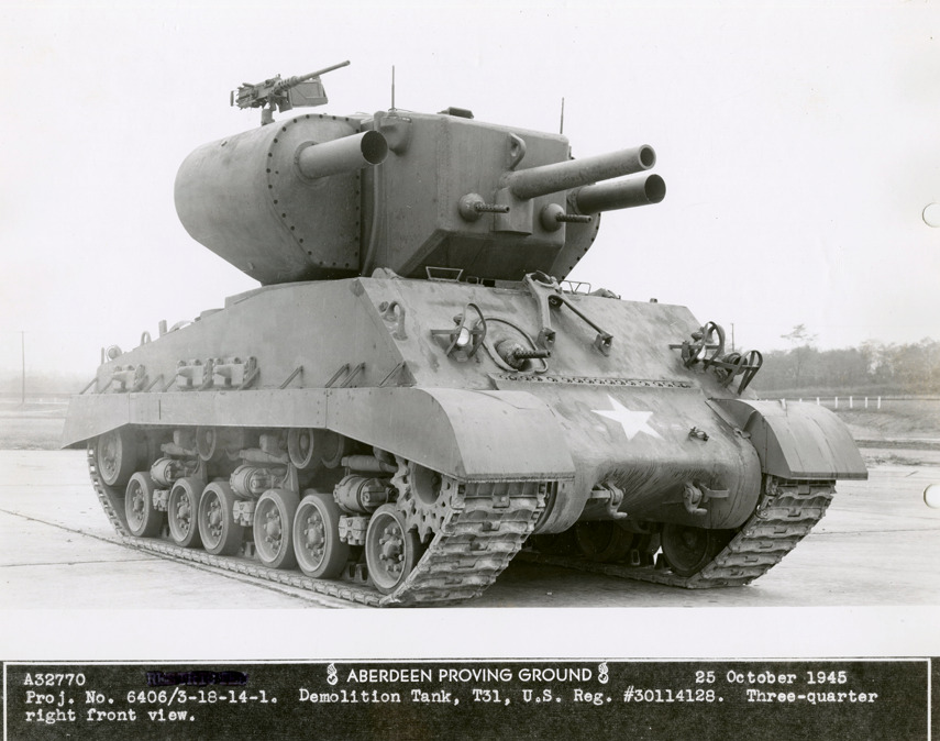 How about the T31 Demolition Tank with its twin 183mm rocket launchers and flamethrower (cleverly disguised as a 105mm cannon because obviously this is just a normal Sherman 105)