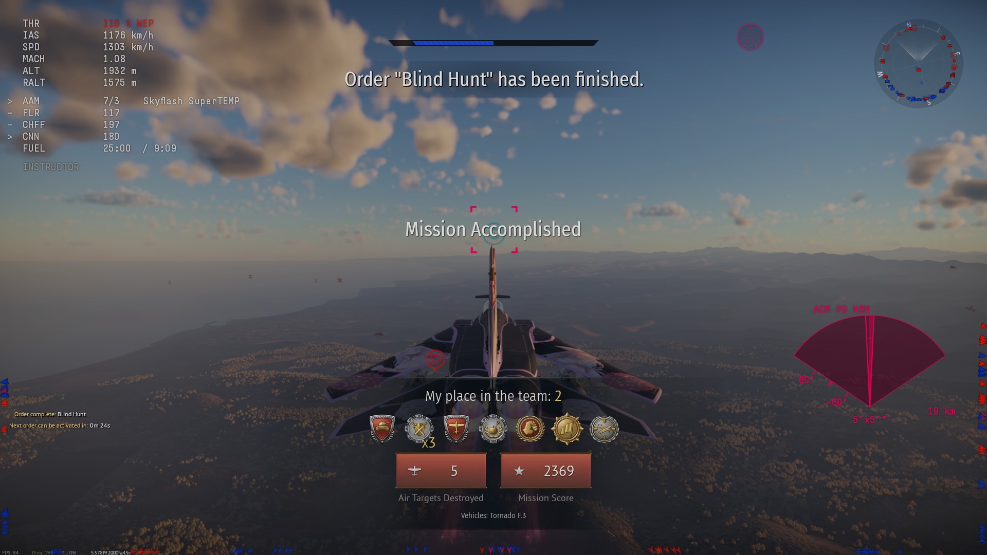 I had some very high-score games, but nothing extraordinary happened in those matches other than getting a lot of kills. My highest AirRB kill count was with the A5C with 9 kills, nothing out of the ordinary, just kept outrating multiple F-5s most of the game.