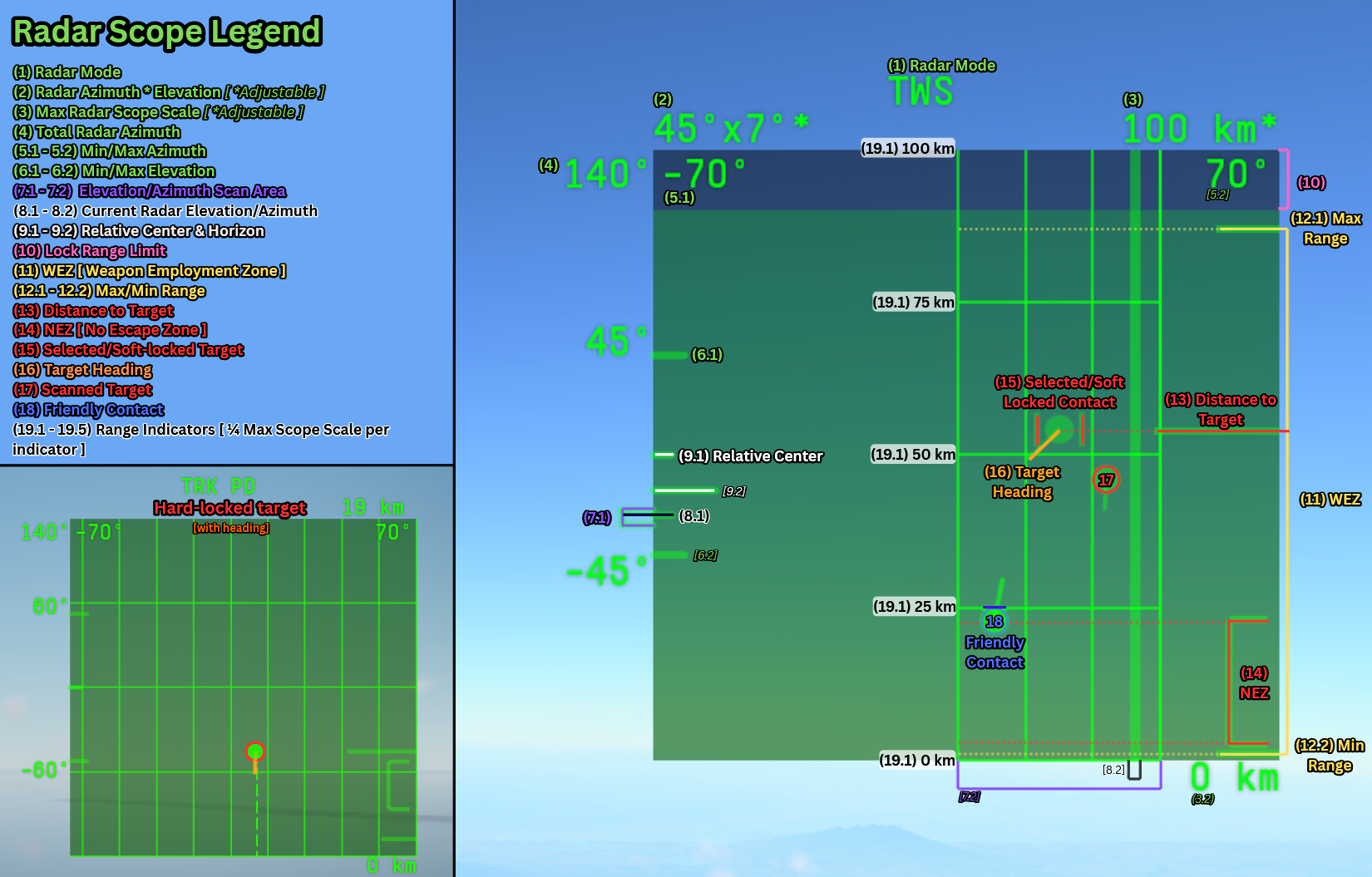 So to summarise, try firing the missile whilst it is within the LSZ on the B-Scope and you should have greater success hitting the target. This range display is found on most aircraft and most weapons. But LSZ box is not modeled for all weapons.