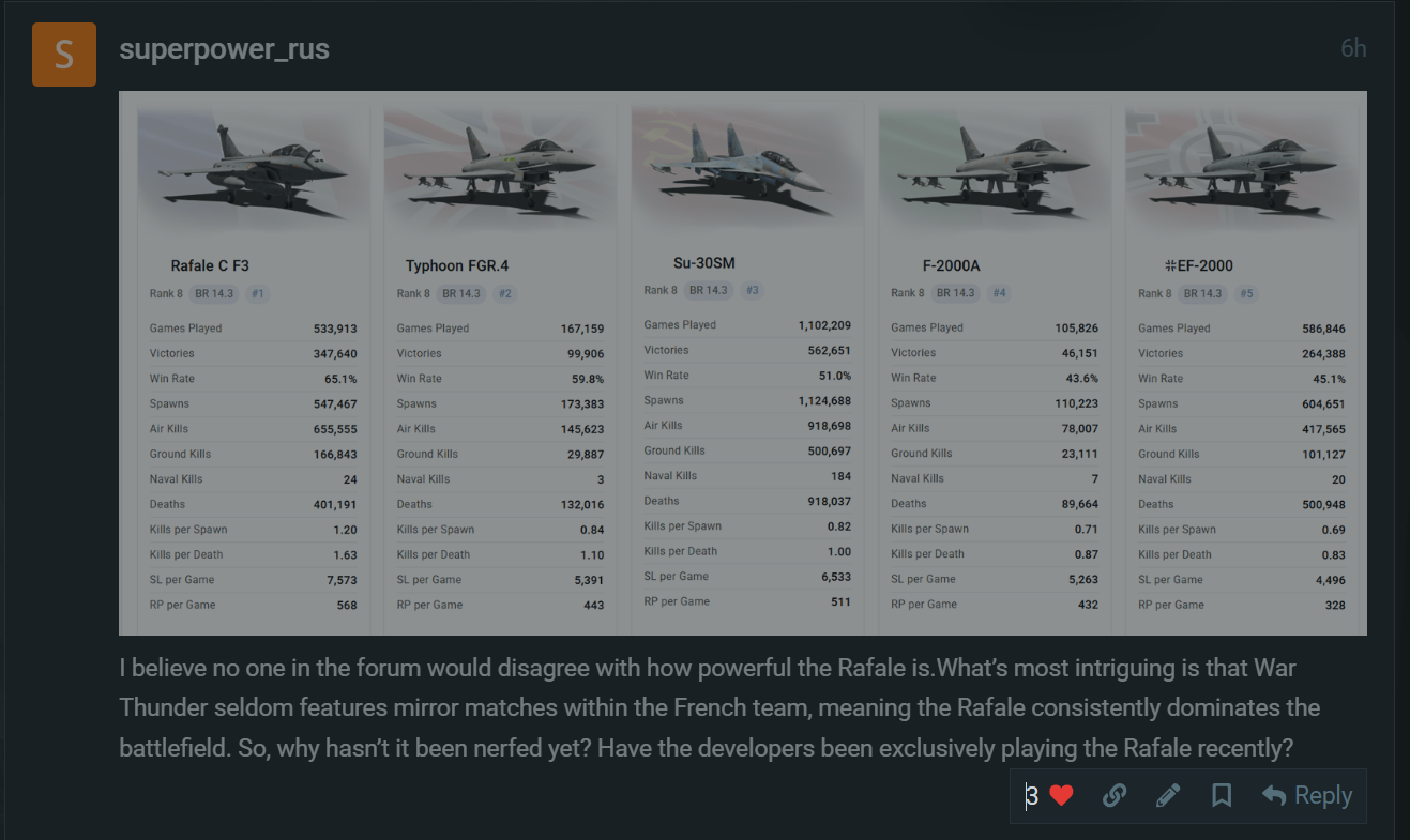 i would mostly put it down to flavor of the month effect + Mi-28NM just being good in general, i think the win rate will drop again in the following month/months when alot of players go to other trees or new content when it drops. Balance between nations in general swing every month with win rates anyway, and just blaming the USSR tree alone for this is not that fair tbh