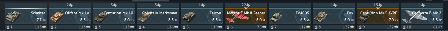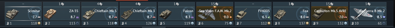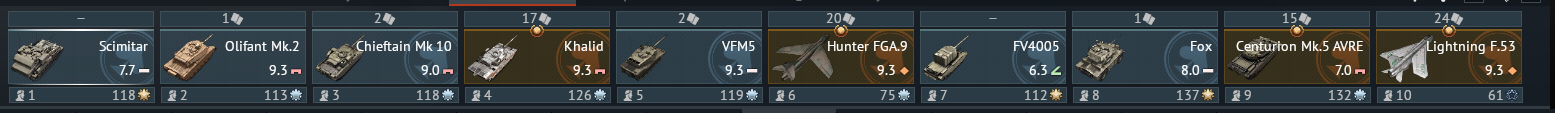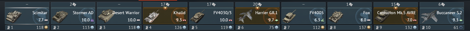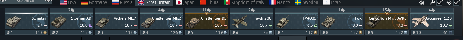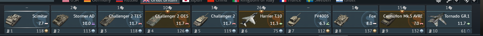 But as you approach top tier your choices are the harrier Gr7 line 4 or Tonkas in line 5 and then finally the Typhoon for top tier in line 1
