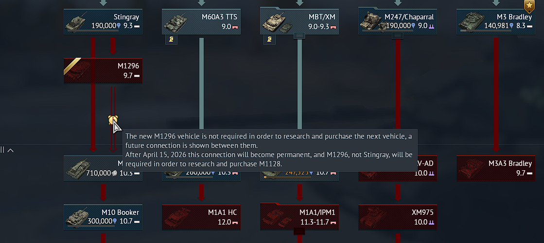 Regarding the change of vehicles to different tech tree lines, I prefer to research the vehicle I want as soon as possible before any update is released even if it means sacrificing some time during those 2 to 3 weeks of dev server previews showing whatβs coming in the major update.