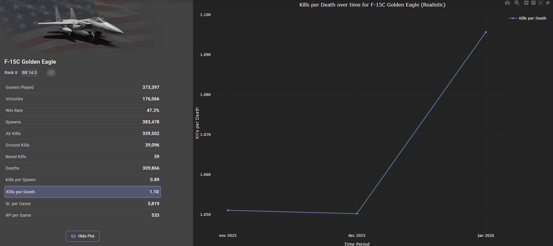 Then I suppose the F-15C GE is an awesome plane because skilled players used it and managed to peform within its first month.