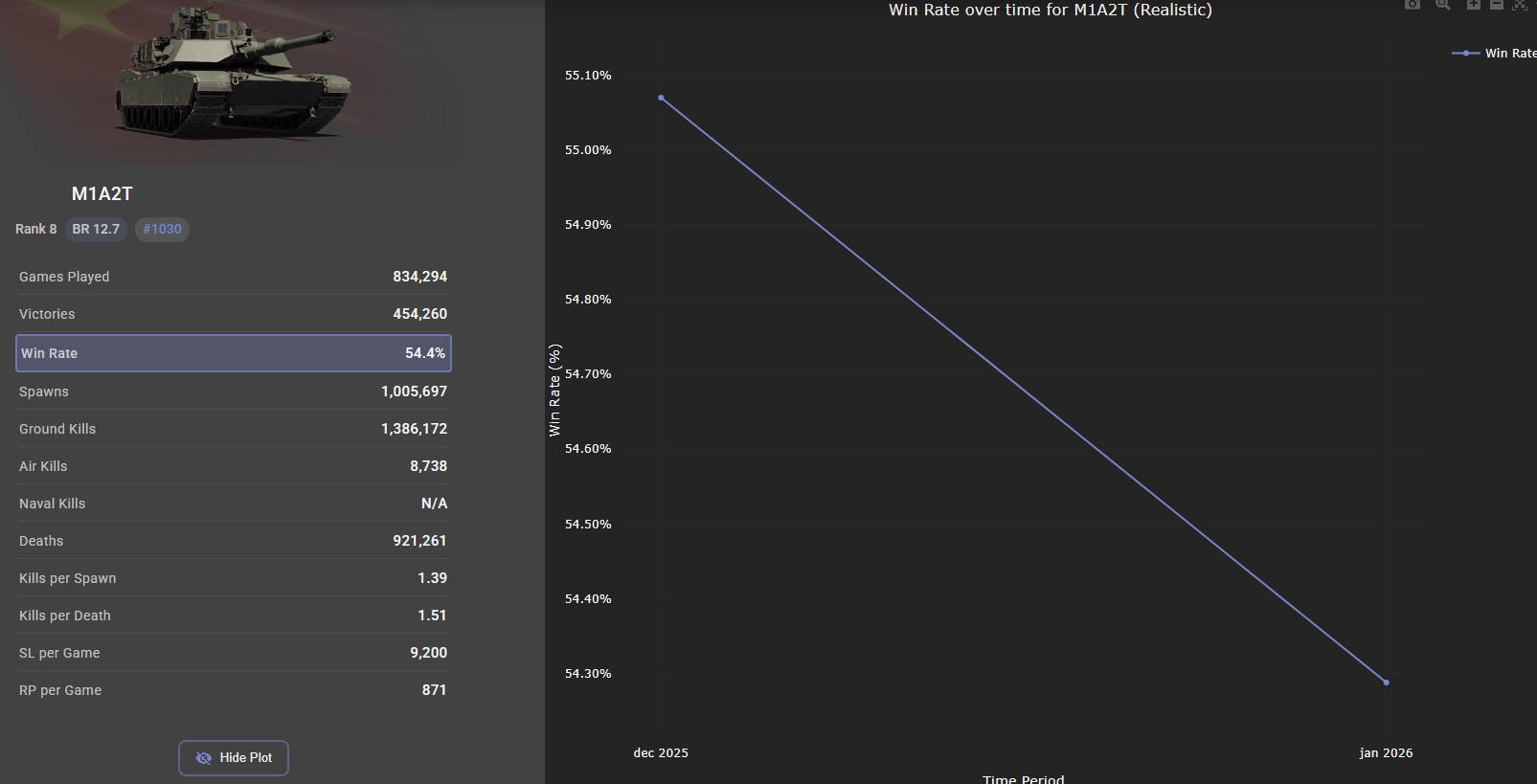 Chinese Abrams’s performance isn’t a proof of anything lmao. Chinese Abram had like 60 something % win rate when it first came out, and it keep dropping closer and closer to USA’s ~43% every month. Not to mention Chinese Abrams wasn’t here back when newer SPAA wasn’t a thing and Kh38MT was raping ground targets and dragging US win rate through the mud.