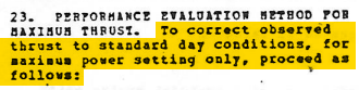 The operator corrects for any difference between the temperature at the time of testing, and that defined in standard atmosphere. This is the last correction applied to the thrust, and is the “corrected thrust” referred to later on. But for completion we’ll keep working our way through the manual until we get there.