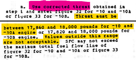 - Now here’s the key part: the operator takes the corrected thrust value achieved at step i in the manual (step 7 in our little walkthrough) and confirms that it is between 17,860 - 18,000 lbf.