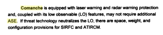 That is because it primarily uses IRCM jamming, not countermeasures, but it had the ability to field them. I want IRCM more than actual deployable countermeasures to be clear, as this tech is clearly built into the commanche as mentioned many times. From what I can tell, the commanche IS meant to have the AN/ALQ-144 somewhere on it.