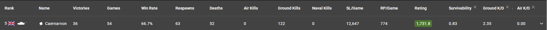 I have barely played the Canarveon since it went up,(like 10 matches in total) and the stats reflect its mediocrity. Negative KD, despite it Being “Overpowered” according to people. and a 47% win rate, because back then it always fought the Germans, and 6.7 Germany has always been Blatantly Overpowered.