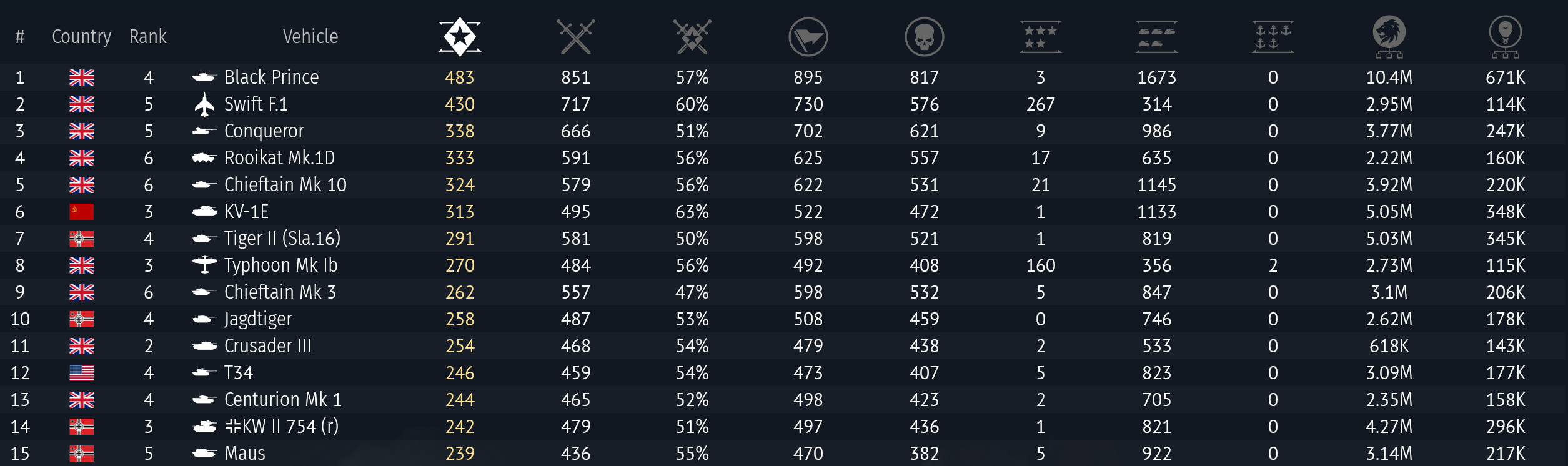 uhhh Huh… Yeah… Yes i play alot of british Vehicles, But of my top 15 most played vehicles, Only 4 of them are Stabilized.