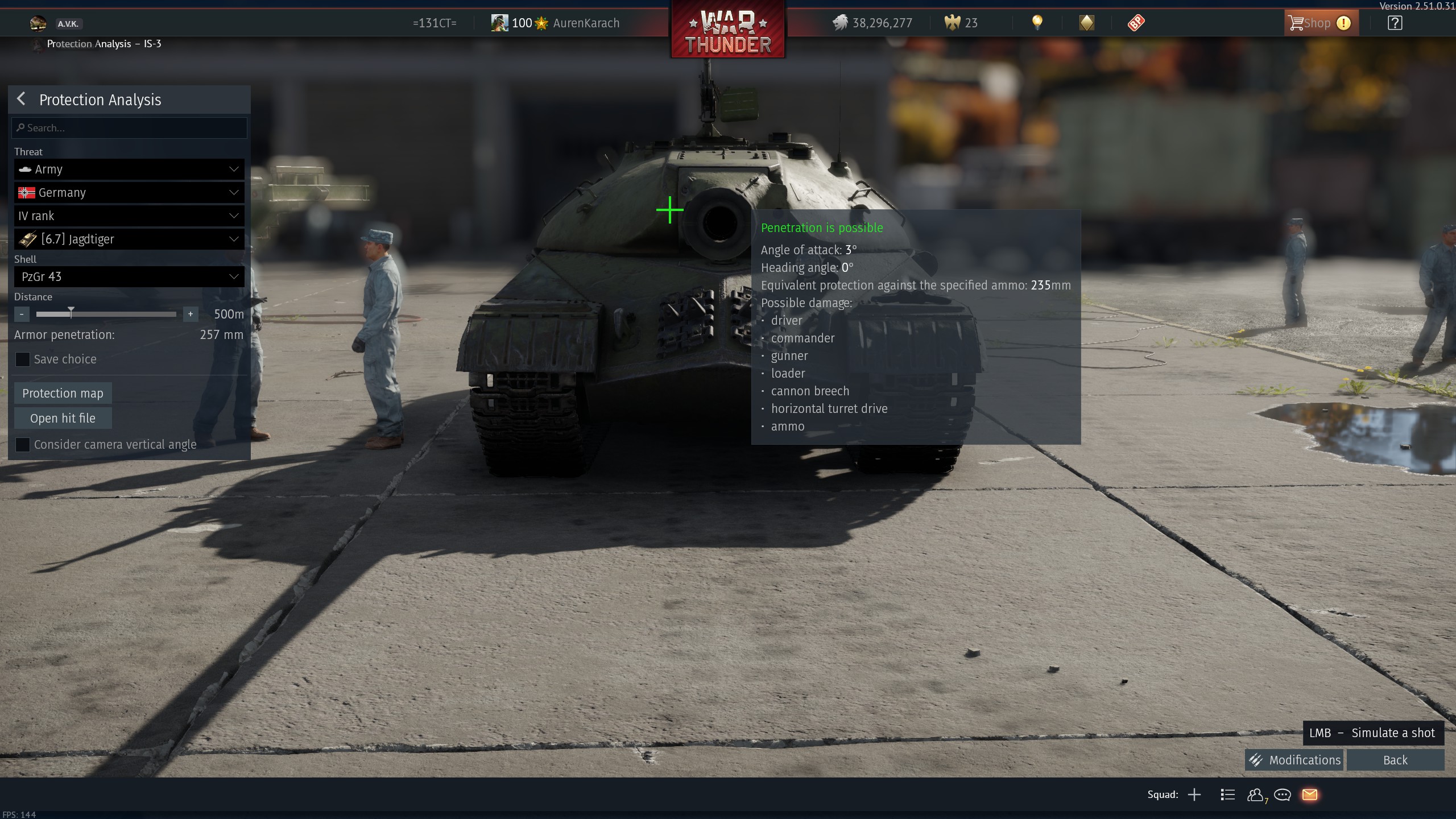 Sadly I have no way of checking protection analysis in the game for this shell. But I can actually think of a few edge cases that would be better or worse depending on the circumstances. For example, killing IS-4Ms is probably harder now, because cutting through the driver’s port no longer guarantees you will overpressure them. But frontally you should have less trouble with T32E1, M103 or IS-3 as well.