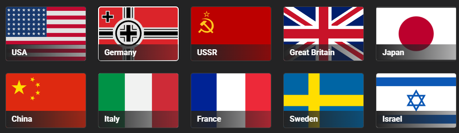 Aside from Germany being this weird variant it seems like they went for an initial theme of WWII flags, then shifted to trying to use modern flags for all the added nations from China onwards.