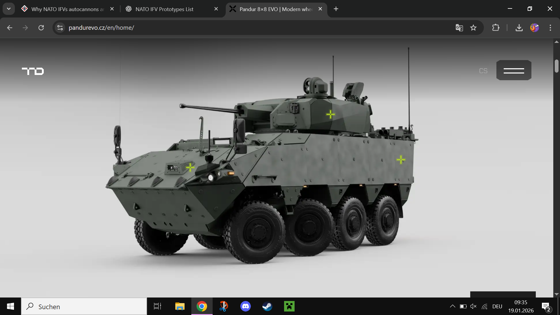 Bad news, it like the CRV Block 2 , it has spike missels, and a bushmaster. (the pandur evo chezk) but it has Iron fist APS, LWS somkinda jammer