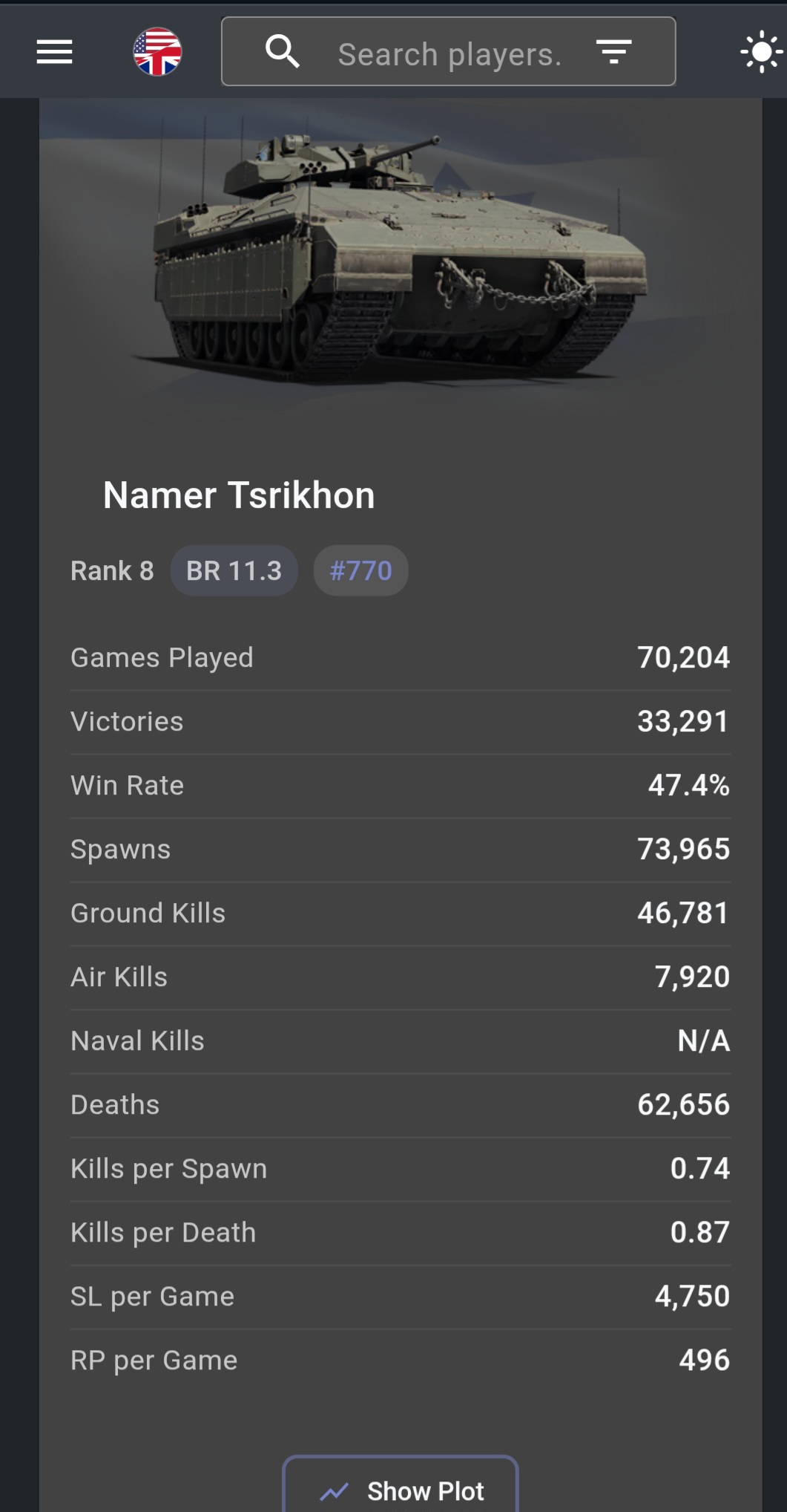 That’s because OP has a history of glazing vehicles that aren’t strong lol hence the way I respond to his post, that’s not insult it’s harmless banter. And the logic of yours is pretty weird as well, if I can perform well in a stock tank, then why do you think things will get tougher when I finally spaded the thing? it makes no sense. What you see was a few bad runs and I would quickly get them back up if I wanted to, having more matches doesn’t necesarily means you understand the vehicle more, seeing plenty of Abrams players claims they understand more just because they have 1000 more matches but their kd and winning rate are worse than someone who has 200 matches, it’s just them repeating mistakes and their experience holds little to no value bro