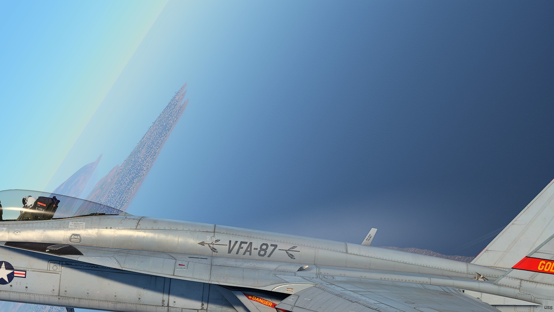 I think Battlefield 6’s effects provide a good benchmark for the quality of vapor FX that this game should strive for. Take a look at this video (not mine) for a good demonstration. You’ll see buffed-up LERX effects, both in size and in quality, and overwing vapor.