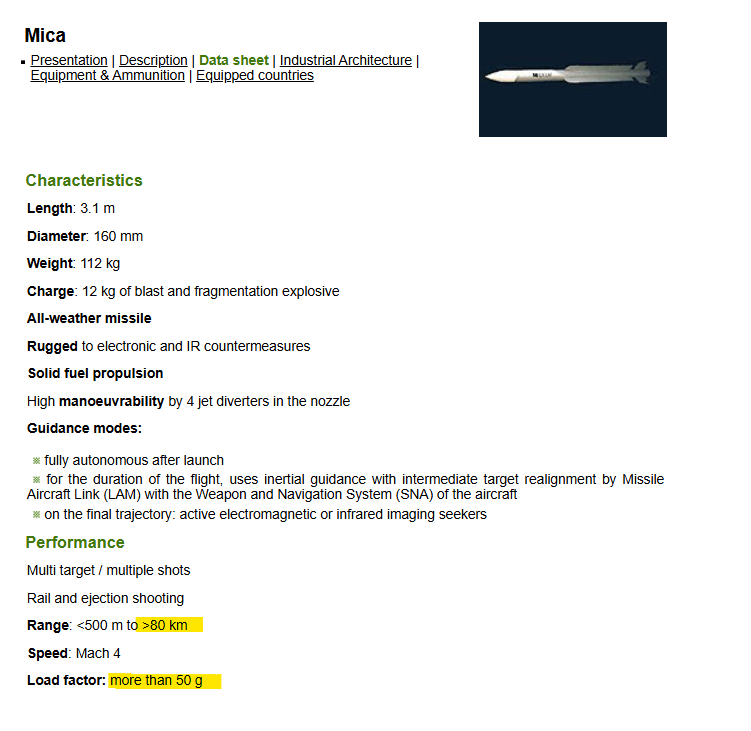 - Mica IR - ~60km max range, same advantages as mica ir ng other than dual pulse