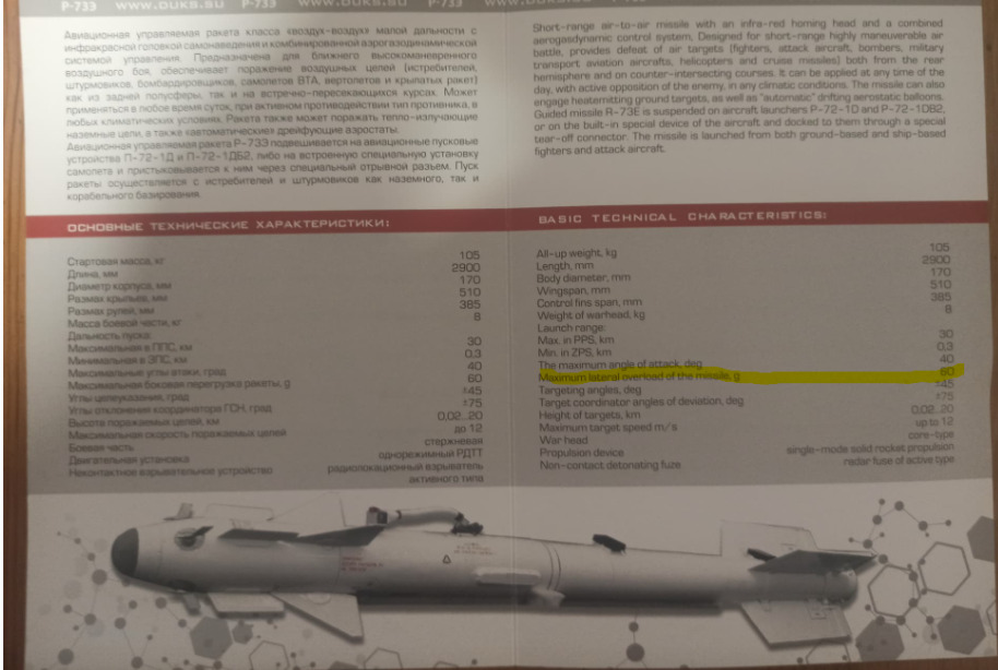 Sounds right though, given the IRIS-T pulls 60+G vs the R-73s 40