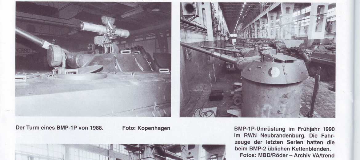 “This equipment was installed by the NVA starting in 1988. The 92 BMP-1Ps (including twelve K1s, three K2s, and three K3s) delivered in 1988 were also delivered without PALR launchers. Retrofitting took place in the GDR.”