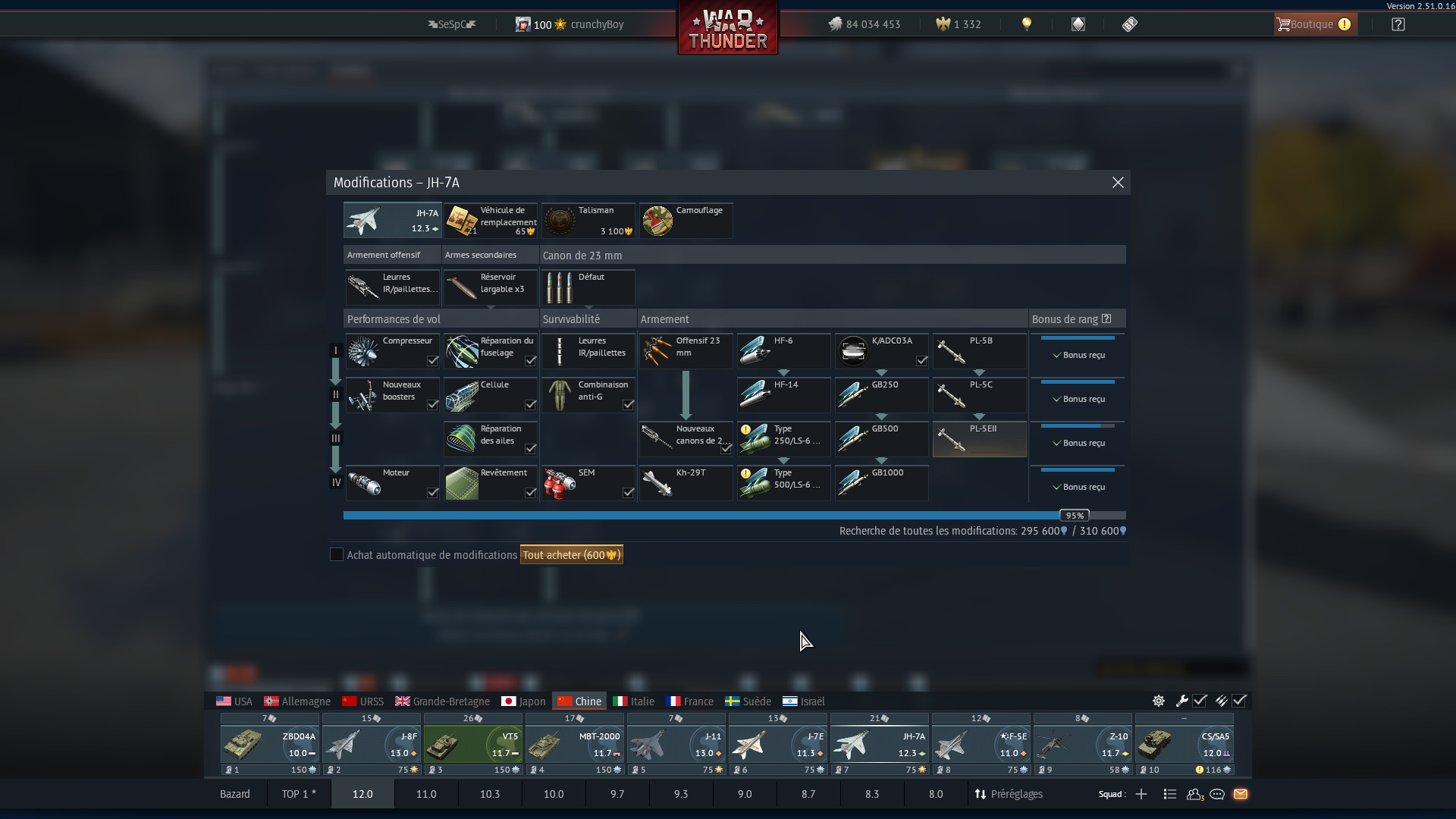 I farm ground battles with the four KH-29s that can take on the enemy. I farmed PL5E2 very quickly with a good average of 6 vehicles destroyed per game just with the JH-7A