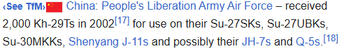 I know it’s not a reliable source, but along with the Su-27/Su-30, China also bought some Kh-29TEs, so technically the only thing left to know is if the JH-7A has the system to launch them.